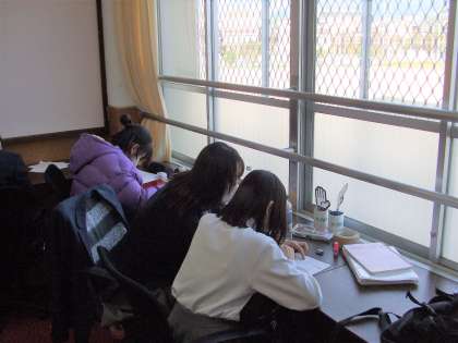 こちらは放課後の学びの聖地(自学自習教室)の様子です。3年生が中心に大学生のボランティアの先生と頑張っています。進路実現に向けて大切なテストです。ベストを尽くしてFight!