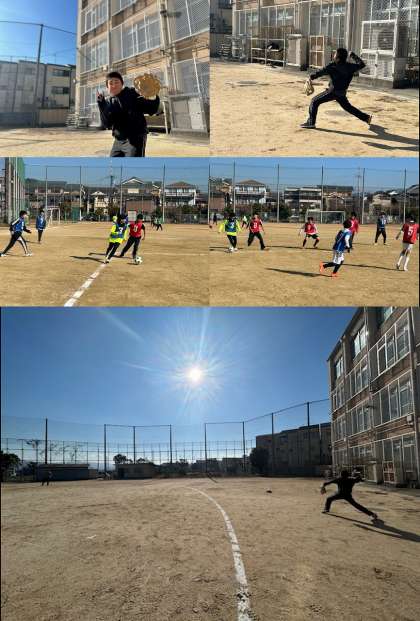また、学校に荷物を取りに来た生徒と担任の先生がキャッチボールをしている様子もありました。