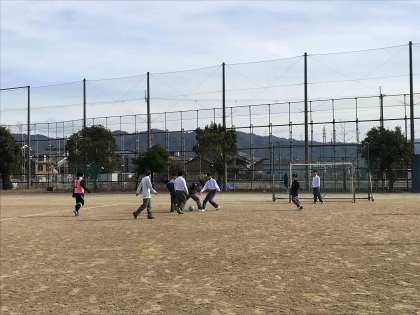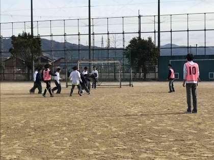 昼休みには1年生と3年生がサッカーの試合をしています。行事でつくった繋がりがこのような時間につながっています。