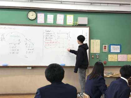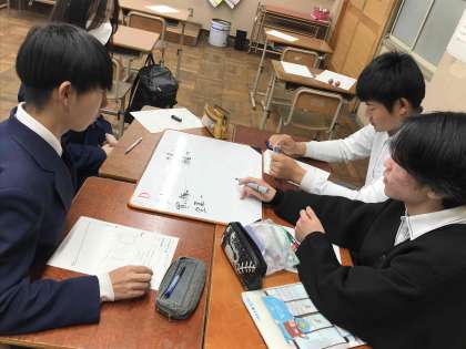 3年生は今週木、金曜日に中学校最後の学年末テストが行われます。入試も控えて授業にも集中しています。(写真は上から数学、社会、理科)