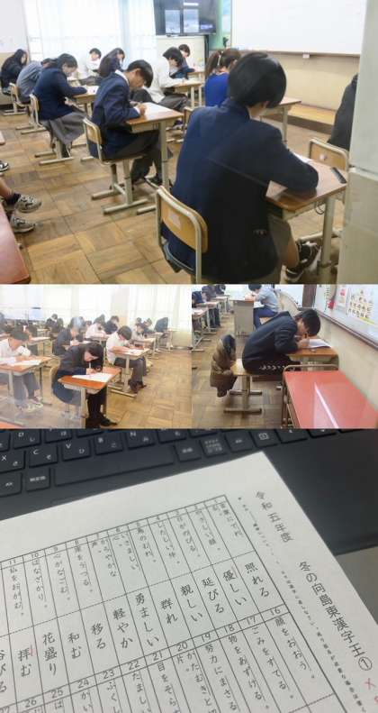 本日の5限は、全学年で「向島東漢字王」が実施されました。冬休みの課題として出されていた100個の漢字に取り組んでいます。今回は夏の漢字王と違い、四字熟語も追加されました。全学年とても集中して取り組んでいました。100点は金賞、90点代は銀賞として表彰されます。結果が楽しみですね。