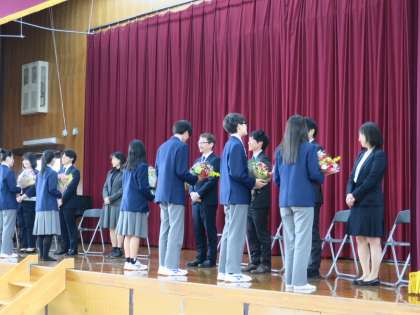 本日は離任式が行われました。ご退職・転任される方々からの思いのこもったメッセージをこれからも胸に,在校生・教職員一同頑張っていきます。