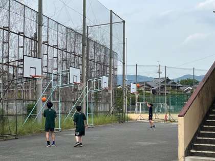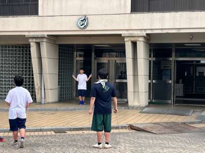 放課後の部活動の様子です。男子バスケットボール部は今日は外での練習。1年生は縄跳びを頑張っていました。ジャンプ力が付きますよ!