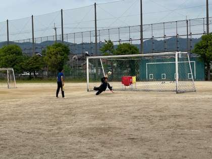 もう一度グラウンドへ行くと陸上部が投てき練習をしていました。春季大会も大変良い結果を出していました。夏に向けても頑張ってください。その横ではサッカー部がキーパー練習を行っていました。