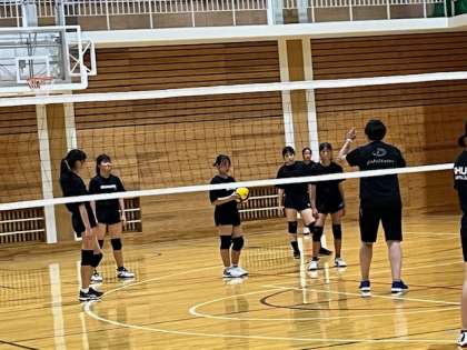 女バスの交流戦の隣のコートでは女子バレー部が練習試合を行っていました。こちらもプレー一つ一つを顧問の先生と確認しながら頑張っていました。10月の新人戦に向けて日々鍛錬を!