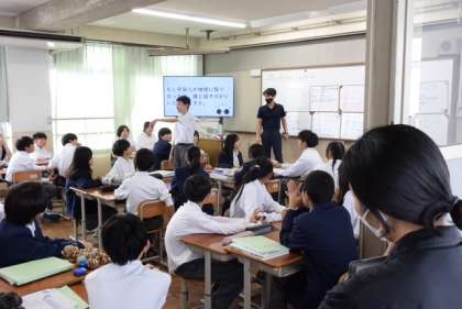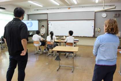 本日は1年生の授業参観に小学校の先生方が来校されました。久しぶりの再開で生徒たちの顔も嬉しそうでした。中学校での学びの様子を見て、この2ケ月間の成長を感じ取って頂けたと思います。