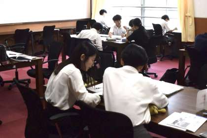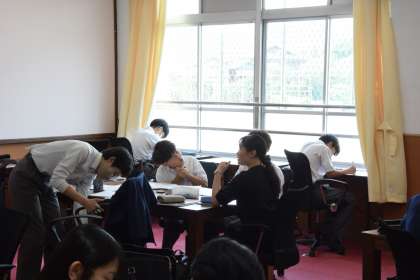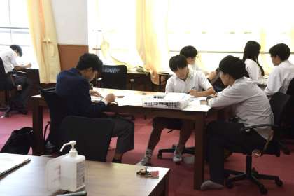 こちらは3年生が中心の学びの聖地1の様子です。復習しなが先生に質問しています。