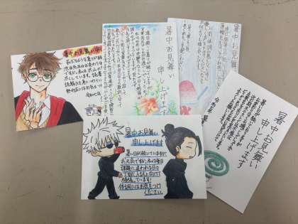 学校には、生徒のみなさんから美しい暑中見舞いが続々と届いています。