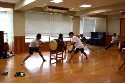 こちらは3年生の太鼓の練習の様子です。しっかり腰を入れて力強くたたくことができていました。本番に向けて頑張って練習をしています。