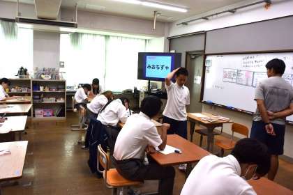 2学期の行事の確認をした後、方言についてのクイズに取り組んでいました。みなさんの元気そうな顔が見れてよかったです。