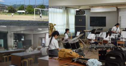 体育館、グラウンドや音楽室などで部活動を頑張っています。