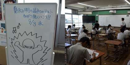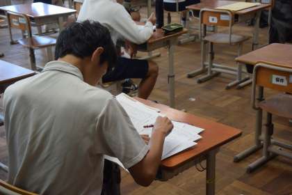 本年度から夏休み明けのこの時期に復習を兼ねた【テストの日】を5教科で行います。各教科の時間もいつものテストは違い少し短いですが、生徒たちはこの日に向けて頑張ってきました。