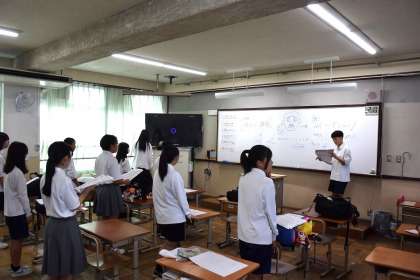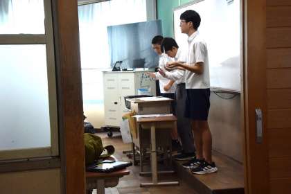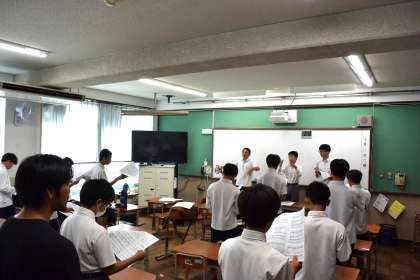 音楽の部の縦割りでの合唱練習の時間です。きれいな歌声に誘われて校内を回ってみると各団ともパートリーダーを中心にこだわりの練習が行われていました。