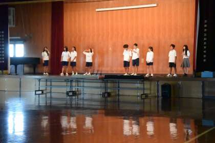 1年生らしく大きな声で身振りも加えて練習している姿はとてもよかったです。本番に向けてみんなで協力し頑張ってください。