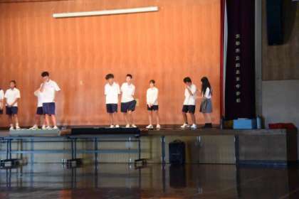 1年生の練習の様子です。体育館で照明も使用した舞台稽古が行われていました。