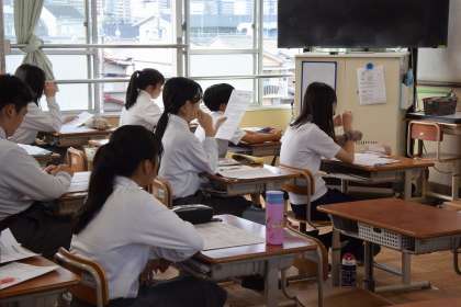 告示のプリントを真剣に見つめる2年生の姿も見れました。みなさんの自身で『自分たちの学校を作る』という気持ちをとても頼もしく思います。