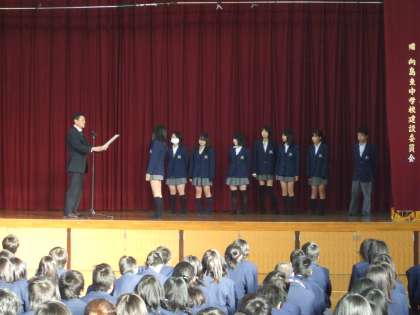 25年の授業開始にあたり,全校集会を行いました。校長先生から「寒さの厳しい期間ですが,基礎学力をじっくりつけてほしい。」「七草粥の由来から,今日からゆっくりと学校生活にペースを戻してほしい。」というお話しをされました。また,昨年行われた京都府アンサンブルコンテストで銀賞を受賞した吹奏楽部管打楽器8重奏の皆さんの表彰を行いました。