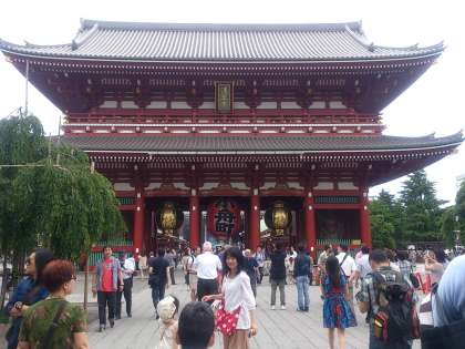 浅草寺の門前で買い物や東京の風情を楽しんでいます。土曜日なので,観光の方も多いようです。