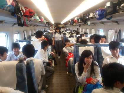 新幹線車内は,予想外に元気そうです。定刻通り京都駅に到着しそうです。丸町公園付近解散は,18時30分の予定です。