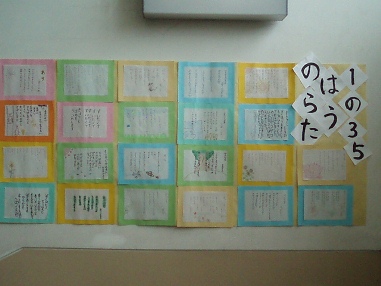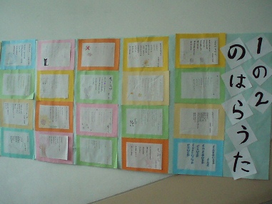 国語の授業で「のはらうた」の教材を使ってみんながオリジナルの作品をつくりました。その作品が4階東階段に掲示されています。作品を読んでいると心が温かくなったり,切なくなったり,つい笑みがこぼれたり・・・・。みんなの感性はすごい!