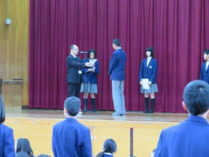今年度の前期学級役員が選出され,認証式が行われました。代表の人が壇上で認証状を受け取り,その後,各教室で委員の人たちにも認証状が手渡されました。放課後は第1回の中央・専門委員会が行われ,活動が開始されました。学級役員のみなさん,学級の代表としてよろしくお願いします。学級のみんなは委員の人たちをしっかりと支え,協力していきましょう。