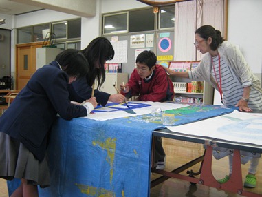 5組の学級旗制作も進んでいます。楽しく真剣に制作に向かう姿が印象的でした。