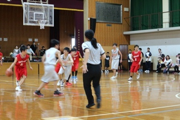 4月30日,本校にて,岡崎中との2回戦のようすです。結果は71−36で勝ちました。3年ぶりトーナメント初戦突破です。
