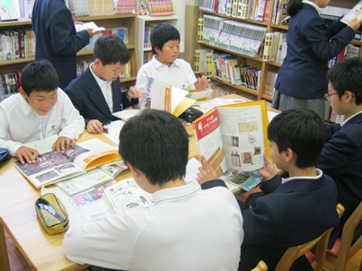 今日の社会の授業は図書室を利用して,世界3大宗教について調べました。宗教は生活に身近なことだと気づいた人もいましたね。集中して学びに向う姿はとても輝いていました。