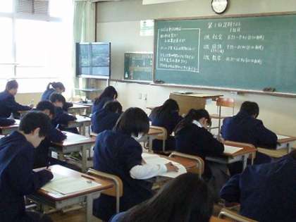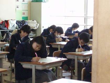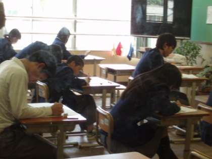 1年生にとっては初めてのテスト。小学校とは違うテストの雰囲気に少し緊張気味でしょうか。2年生は去年よりもしっかりと問題と向き合っていたようです。進路を決めなければならない3年生はやはり真剣さが違いましたね。努力すれば必ず結果が出るとは限りません。でもその努力が次につながり,やがて自分に返ってきます。結果を出した人は必ず努力をしています。もし努力なしで結果が出てもそれは次には絶対につながりません。しんどいことと向き合うことが勉強ですね。あと1日,がんばれ!