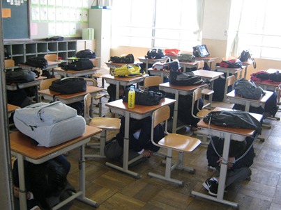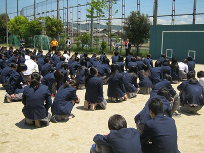 第1回テストの終了後,避難経路の確認と避難訓練がありました。熊本・大分の地震から14日で1カ月になります。この1ヶ月間,合計約1400回の地震が続いているそうです。グランドに避難した後,亡くなられた方々に黙とうを捧げました。教頭先生からは「被災された多くの人々の悲しみに思いを寄せることと同時に他人事ではなく,日頃から地震に備える意識が大切。まず自分の命を守る行動をとれるように。」というお話がありました。