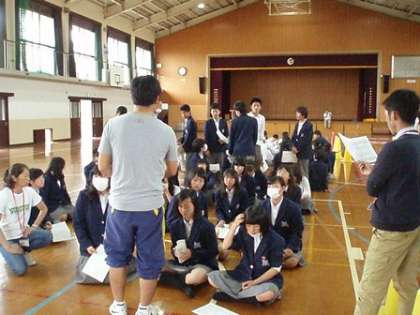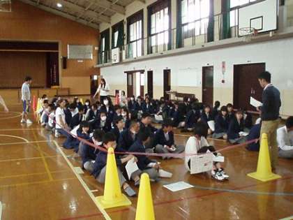 3年生は今日,体育館で新幹線の乗車練習がありました。コーンを使って作られた新幹線に素早く乗り込む練習です。当日,限られた時間で全員が安全に,そして周りの乗客にも迷惑にならないように,乗り込まなければなりません。これは1人ひとりの協力が必要です。修学旅行へのワクワクした気持ちで浮かれることなく真剣に練習する姿が印象的でした。