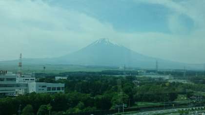 今日は天気にも恵まれ,新幹線の窓から…何と富士山がきれいに見えました!実物を初めて見る人もいたのでは。バスではバスガイドさんから富士山にまつわる話などしていただき,新たな発見があったようです。いかだ作りの会場に向けてあと少しです。
