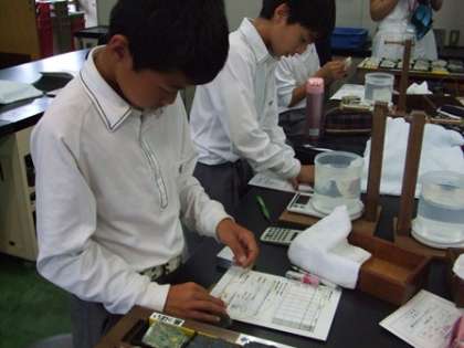 1年3組は「緑色岩ってどんな石?」という学習テーマで,緑色岩のでき方や見分け方について学習しました。京都の山や川にもある身近な石ということがわかりました。