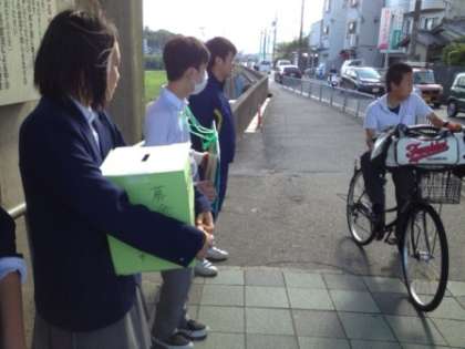 生徒会の募金活動は今日で最終回でした。合計10日間,生徒会のみんなは観月橋の南詰で募金を呼び掛けました。ほんの小さな活動かもしれませんが,その小さな一歩が大切なのです。熊本地震から間もなく2カ月です。日々の暮らしの中で忘れてしまいがちですが,被災地の人々は今なお,不自由な暮らしを強いられています。こうやって募金活動をすることで少しでも被災地の人々に想いを寄せられたらと思います。募金の結果は今度の生徒総会で報告されます。募金活動にご協力くださった方々,本当にありがとうございました。