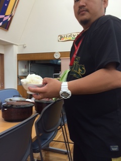 朝からしっかり活動したので,もりもり食べています。生徒も先生もしっかり「おかわり」