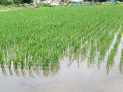 7月に入った途端に暑い日が続いてます。今日は校門の桜の木からセミの鳴き声も聞こえました。そして校門前の稲の緑も鮮やかでグングン成長しています。