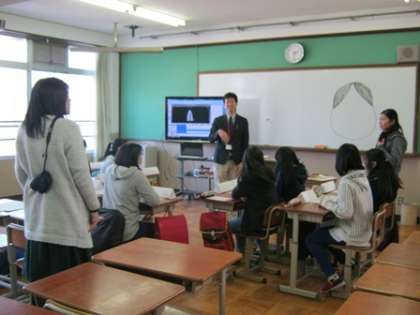 2つの小学校の6年生児童を招待し,オープンスクールを実施しました。まず,授業体験をしてもらいました。英語・理科・技術・家庭・生活の5つの講座に分かれて体験してもらいました。