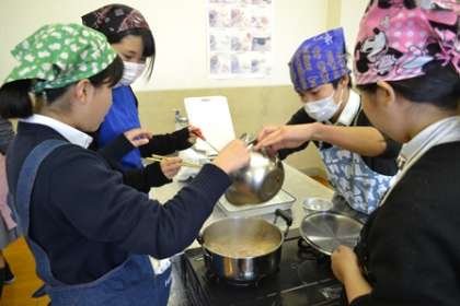 今週の家庭科では調理実習で豚汁を作りました。寒い冬にはピッタリのメニューです。おいしくできましたね。