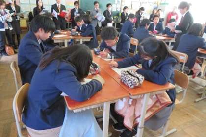 2月3日(金)午後,授業研究会を実施しました。約50名ほどの教育関係者の方に授業を見ていただきました。生徒も普段と違う雰囲気の中で,とても緊張していました。