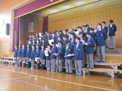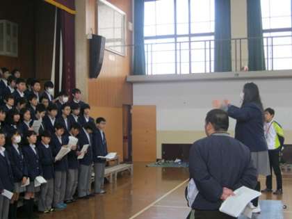 本日4時間目,体育館で3年生を送る会の練習をしました。最初に生徒会担当の先生から説明があり,本番を意識して,入場,群読,合唱の練習をしました。残りわずかな練習時間ですが,3年生の心に響く送る会になるよう,1年生の気持ちを一つにして取り組みましょう。