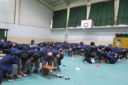 先週の金曜に「3年生を送る会」が行われました。3年生は1年生が作った招待状を朝学活で受け取りました。会が始まる前に,シェイクアウト訓練が行われ,みんな真剣に訓練に臨めました。明日で東日本大震災から6年。亡くなった方15,893人。行方不明の方2554人。今なお避難されている方123,000人。その内仮設住宅で暮らしておられる方35,503人。震災は終わっていません。3月11日は防災について考える機会とすると共に,今ある日常を当たり前と思わず,感謝する機会でもあります。