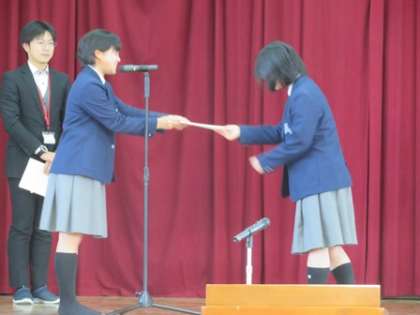 今年度もいよいよ最終日です。1時間目は修了式でした。3年生が卒業し,1,2年生だけの式となり,少し寂しかったですね。最初に美術科と国語科,図書委員会からの表彰が行われました。日頃の頑張りの成果ですね。