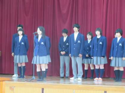 その後,校長先生からは「目的意識を持つこと,責任を果たすこと,そして感謝をすること」というお話がありました。最後に生徒会本部・専門委員長から今年度の活動の報告がありました。生徒会のみんなが原稿を見ないで,報告をしました。これはすごいことです。