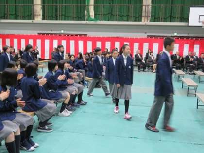 新入生の入場です。この瞬間から向島東中学校での生活が始まりました。