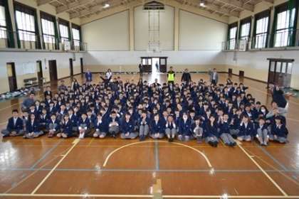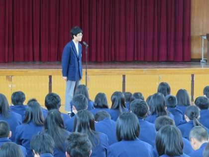 続いて生徒会長から話がありました。生徒会の活動は1人ひとりの協力が必要です。生徒会長の呼びかけに応えて,みんなでいい学校をつくっていきましょう。その後,部活動顧問の紹介があり各顧問の先生から意気込みや目標について,話がありました。最後に全校で写真を撮りました。今回は欠席の人もいたので次回は全員そろって全校写真が撮りたいですね。