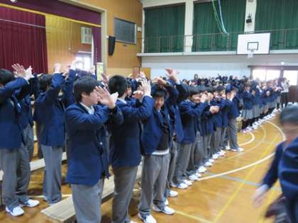 続いて入学式当日の様子が映像で流れ,2年生からの工夫を凝らした出し物と合唱の発表がありました。先輩になった頼もしい歌声でした。そして恒例の東中○×クイズで盛り上がりました。