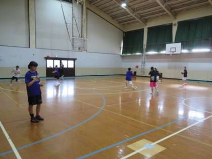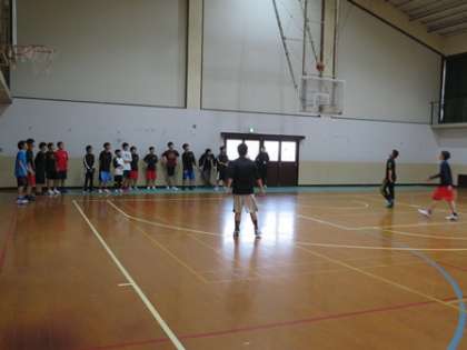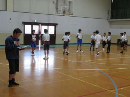 「迎える会」の後,部活動紹介が行われました。まず男女バスケットボール部,サッカー部の紹介の様子です。