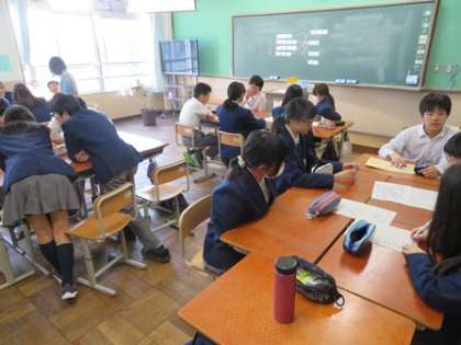 3年生は今日,2日目の都内班別研修の計画を立てました。班ごとに目標を決め,役割分担し,研修コースを相談しましたね。修学旅行まであと19日。わくわくした気持ちが伝わってくる時間でした。