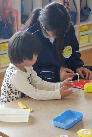 園児たちは元気いっぱいです。お姉ちゃん先生も園児のパワーに負けず,頑張っています。明日も元気よく頑張りましょう!