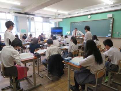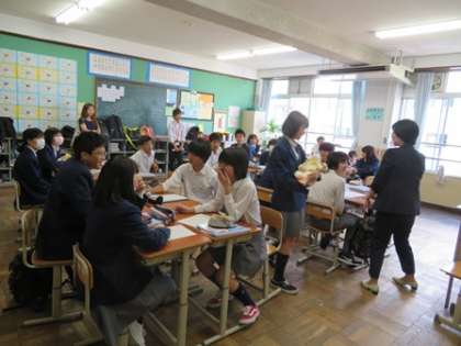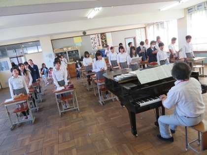 3年生の1時間目は,1組が音楽,2組が英語,3組は家庭科でした。